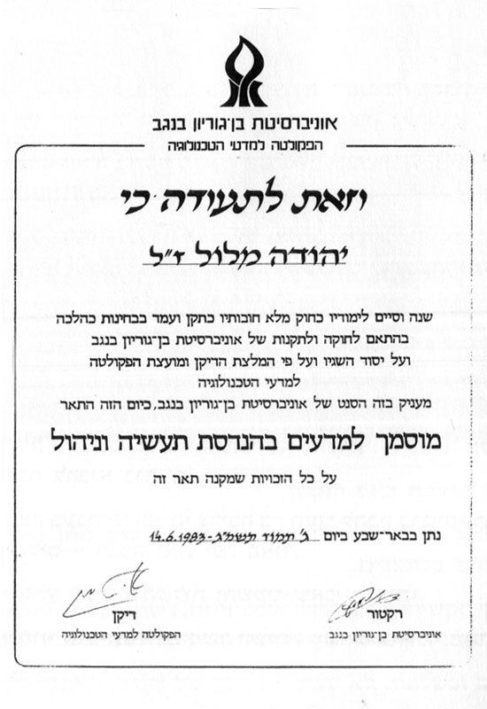 תואר הסמכה למדעים בהנדסת תעשיה וניהול