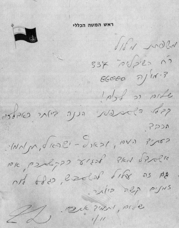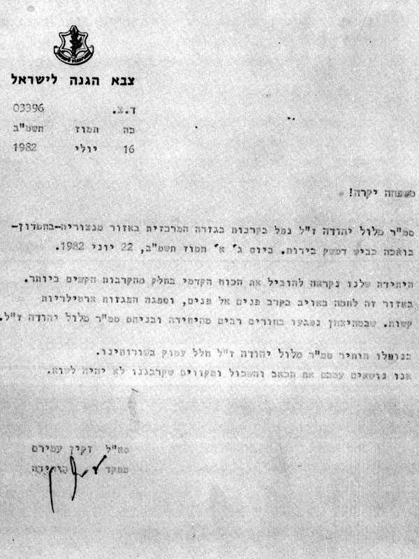 מכתב מהרמטכ"ל רא"ל רפאל איתן