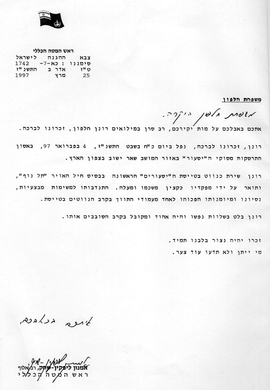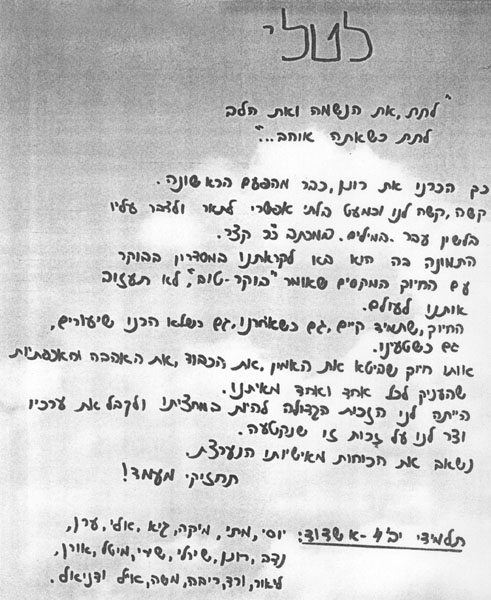 מכתב ניחומים לטלי חברתו מאת תלמידיו