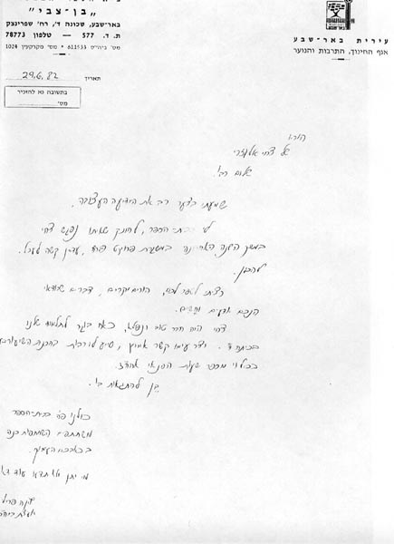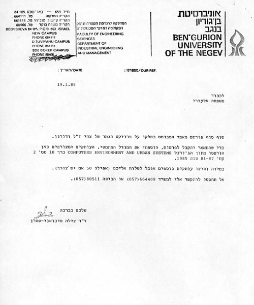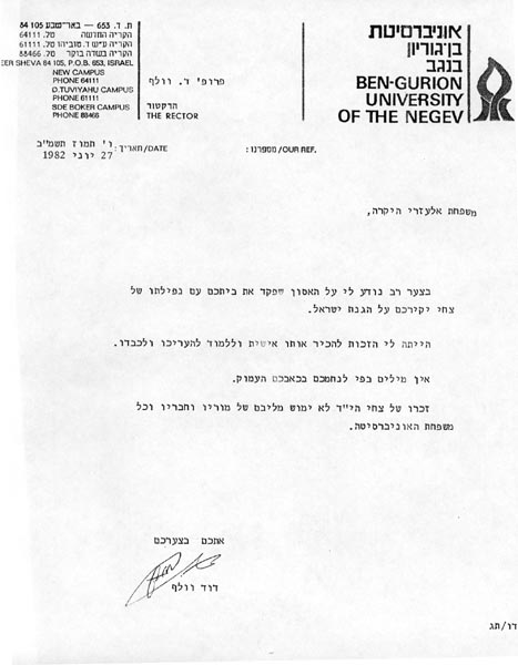 מכתב לזכרו אוניברסיטת בן-גוריון