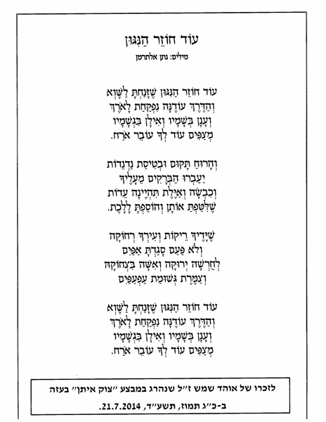 "עוד חוזר הניגון" - שיר שהוקדש לזכרו